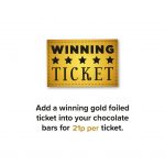 Add a winning golden ticket to each box for 21p! (chocolate bar will be wrapped in eco film if added) PLEASE NOTE: WE CAN’T PRINT METALLIC TO BOTH SIDES OF THE GOLDEN TICKET. If you would like the artwork to be double sided please note that one side will be metallic and the other side will be white.